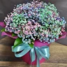 Композиция из разноцветных гипсофил, представленная в шляпной коробке, словно воплощение радуги на земле. Яркие и сочные оттенки цветов создают ошеломляющий эффект, наполняя пространство вокруг взрывом красок и радости. Каждая гипсофила в этой композиции как отдельная живая картина, переливающаяся разнообразием цветов и оттенков. Шляпная коробка, украшенная изящной лентой, придает композиции особый шарм и элегантность, делая ее настоящим произведением искусства. Эта яркая композиция словно напоминает о том, что жизнь – это праздник, который стоит отмечать каждый день.